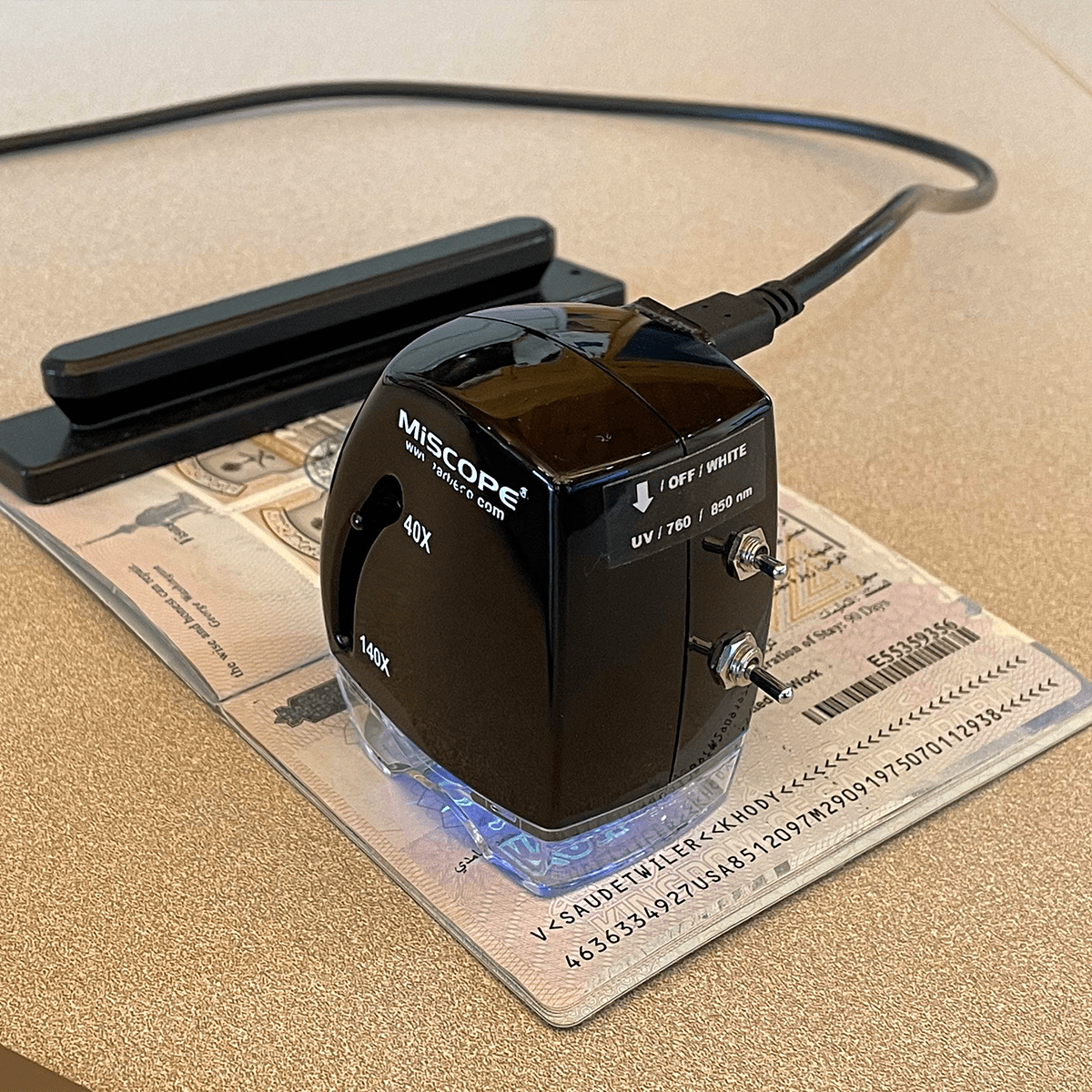 In addition to the microscopic capabilities, the video spectral comparator (VSC) is a scientific instrument that allows an examiner to non-destructively examine and evaluate materials, such as inks and papers, beyond the visible light spectrum which is accomplished by employing light sources of different spectral characteristics, including long-wave and short-wave ultraviolet radiation, together with specialized bandpass filters.